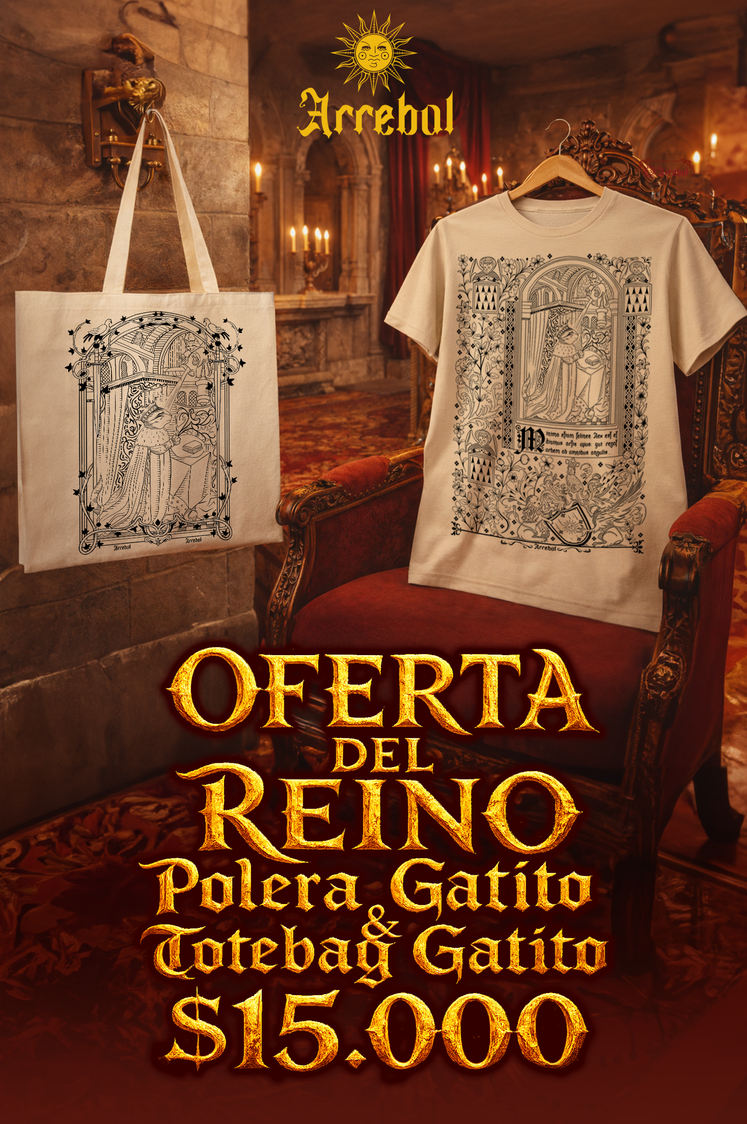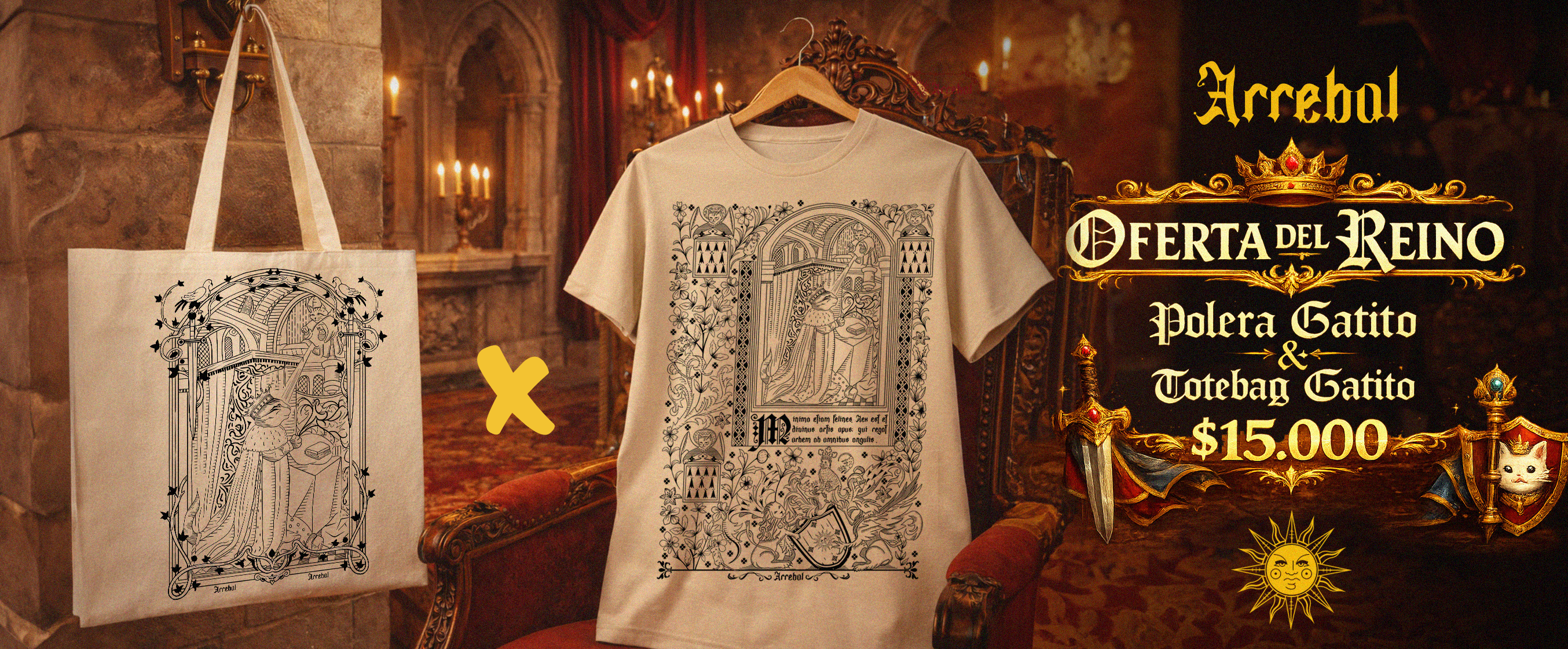 .OFERTA - REY GATO - MEDIEVAL - ANIMALES - POLERA